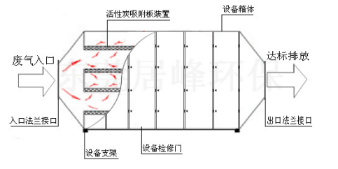 活性炭吸附箱活性炭吸附装置的工作原理废气经过吸附塔内的初效过滤器除去固体颗粒物后,进入塔体,经过活性炭层吸附后,除去气体中的有机废气分子,达到符合排放标准的净化气体,经风机排到室外。活性炭吸附装置的设计:只有科学合理的设计,才能保证活性炭吸附塔的吸附效果。因此在设计时应考虑到以下几点:1. 有机气体的物理特性:有机气体的温度、湿度、浓度等是我们设计时必须要了解的,特别是有机气体的浓度,它是我们设计活性炭塔的重要依据之一。2. 有机气体的化学特性:有机气体的气体分子量是我们设计时的又一个重要依据之一。另外气体中是否混有酸性、碱性气体,这两种气体会腐蚀主体材料,所以在设计时也应该考虑到,在气体没有进入活性炭塔体之前将这两种气体处理掉。3. 其他因素:设计的处理风量、设备每天的工作时间、活性炭的更换频率;在设计时都要向客户详细地了解。